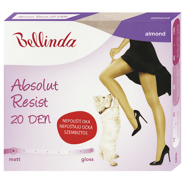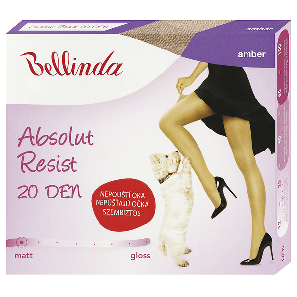 Nová generácia transparentných pančuchových nohavíc Absolut Resist 20 DEN, na ktorých sa nikdy nespúšťajú očká. Sú vyrobené z priadze Lycra Fusion technológiou 3D pletenia. Vďaka tzv. zváraným bodom zabraňujú spúšťaniu očiek. Úžasne vyzerajúce nohy počas celého dňa. Moderné ženy môžu zabudnúť na spustené očká a cítiť sa slobodne počas celého dňa.